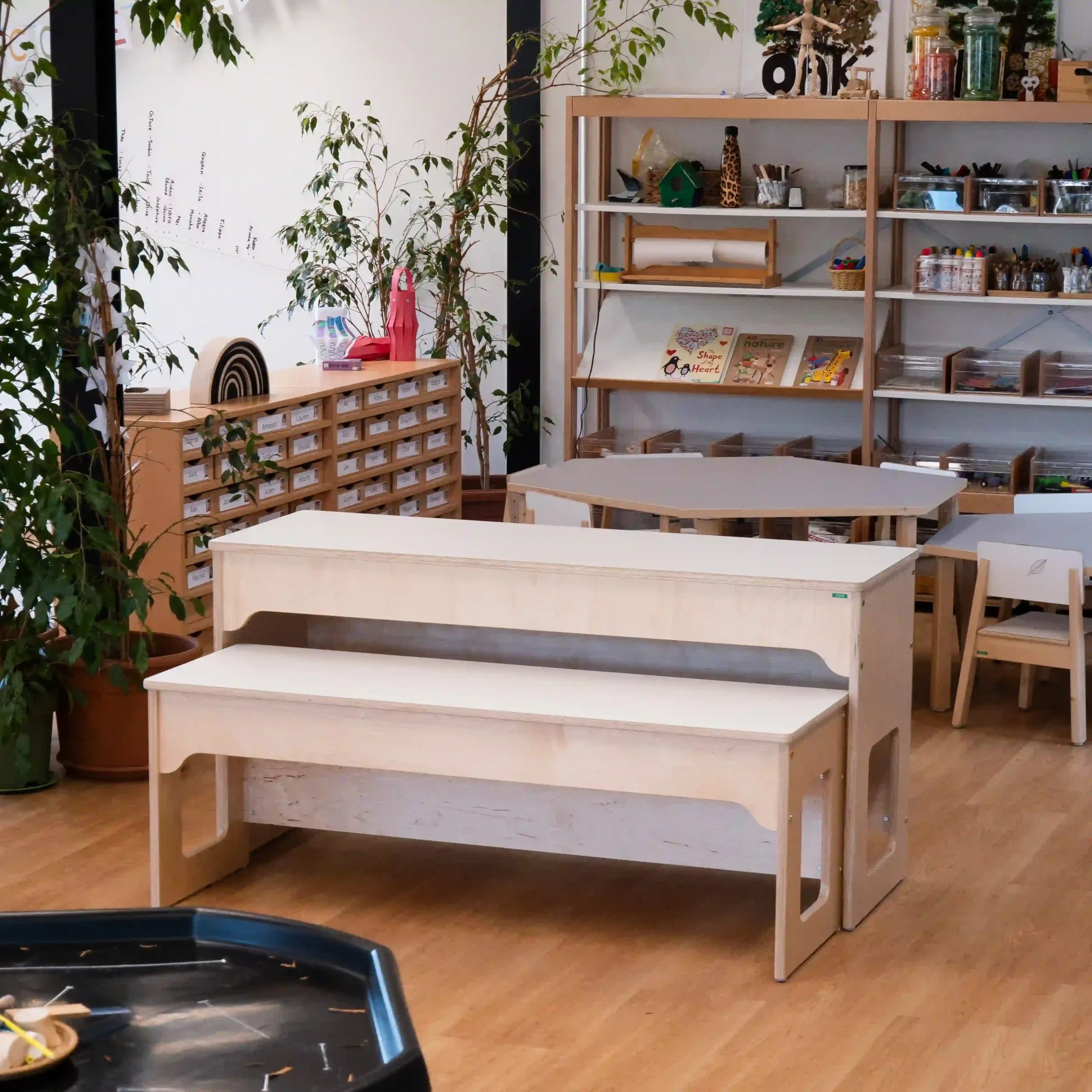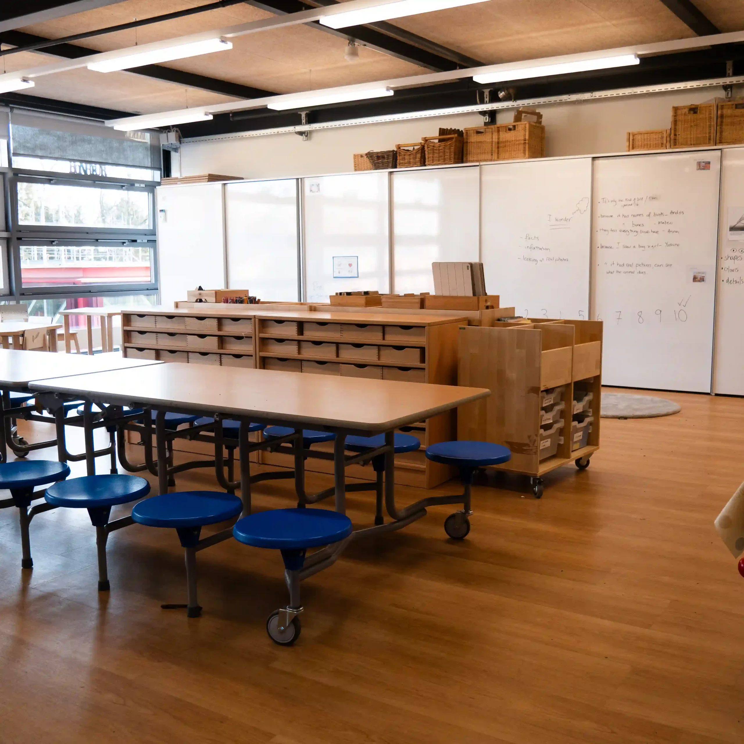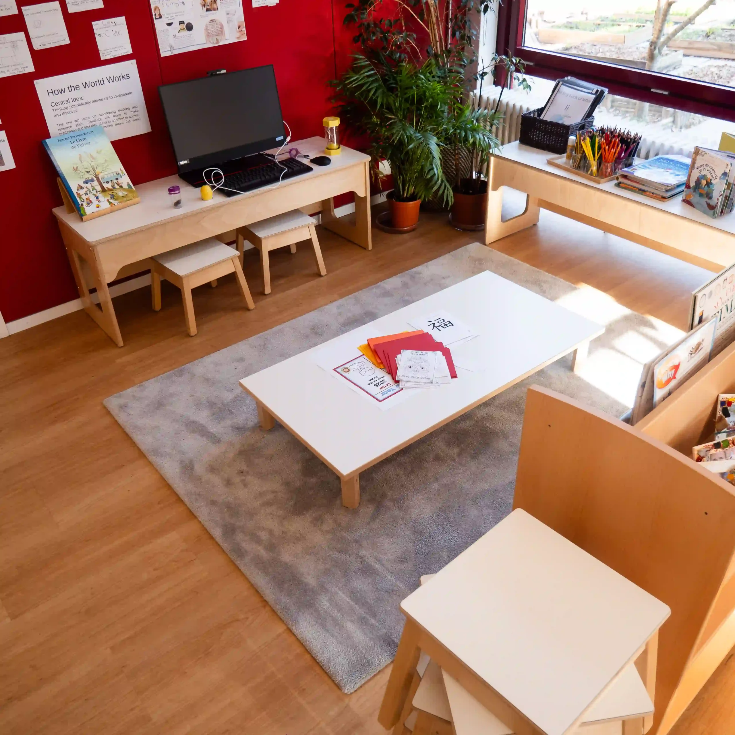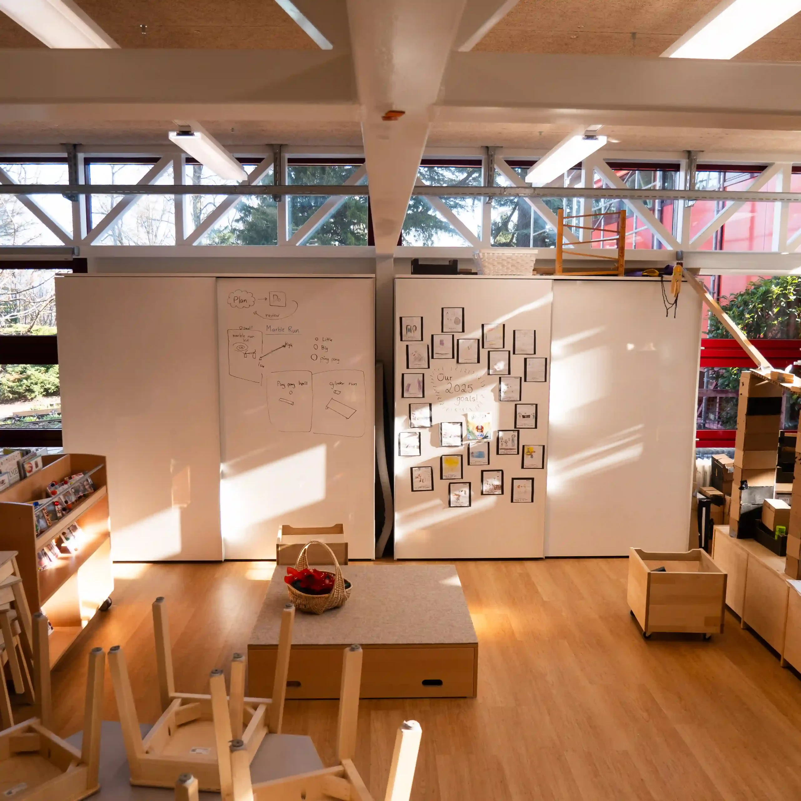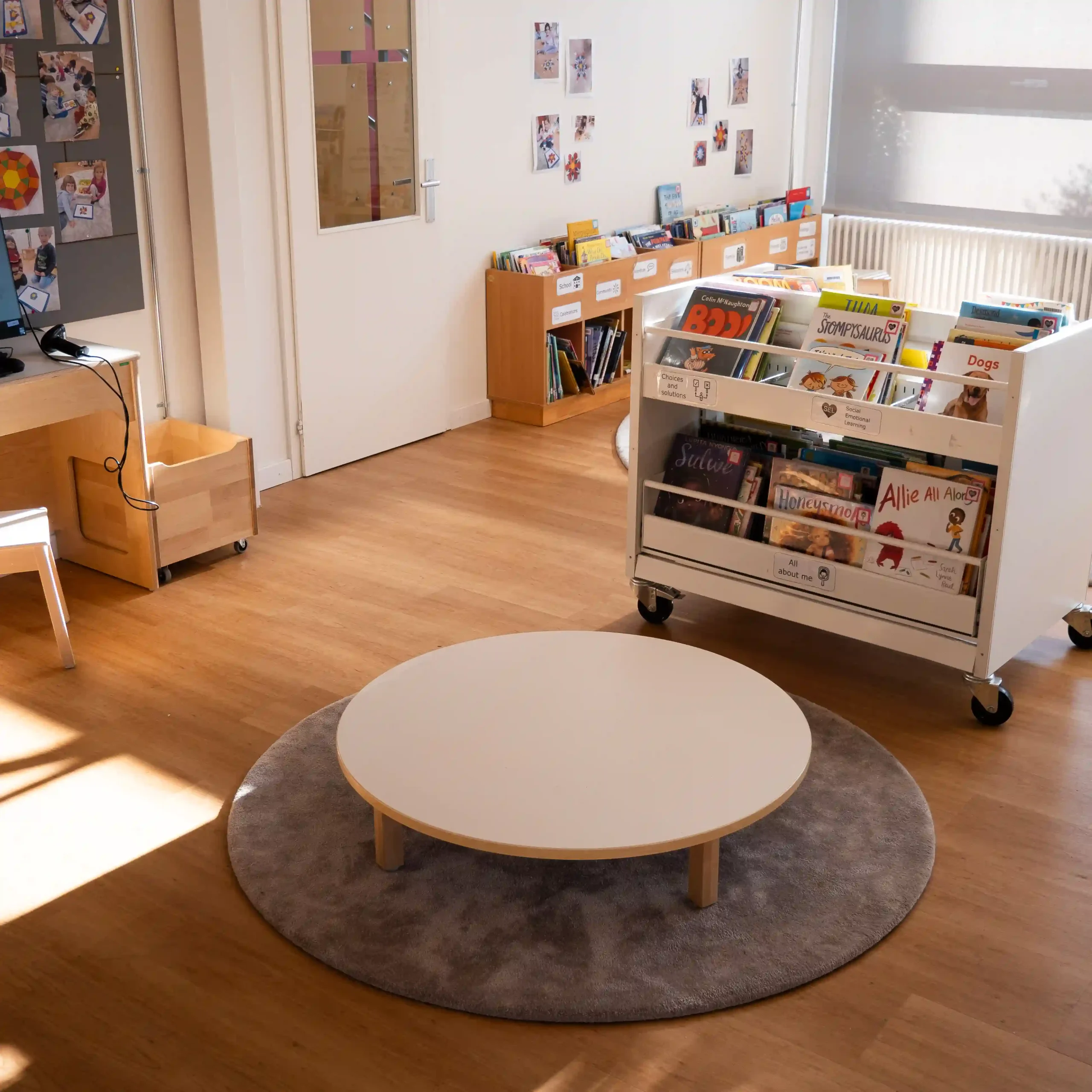 Dans le cadre de ce nouvel aménagement, ROD a conçu des espaces dédiés à l’apprentissage et à la collaboration au sein de cette école enfantine à Genève. Chaque détail a été minutieusement pensé pour répondre aux exigences des tout-petits : des salles de classe équipées de tables au revêtement « soft » procurant un toucher doux tout en assurant une absorption efficace des chocs, et un mobilier sélectionné pour sa robustesse et sa finition écologique. Les espaces collaboratifs, dynamiques et conviviaux, encouragent l’échange et stimulent la créativité, tandis que des tapis soigneusement choisis apportent confort et réduction des nuisances sonores, complétés par des patins sous les chaises pour minimiser les déplacements bruyants. Pour répondre aux besoins pratiques de l’établissement, des armoires élégantes à portes coulissantes – pouvant même servir de support d’écriture – offrent des solutions de rangement à la fois astucieuses et esthétiques. Une collaboration réussie qui allie fonctionnalité, modernité et bien-être, créant ainsi un cadre inspirant au cœur de Genève.
