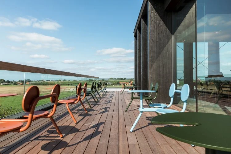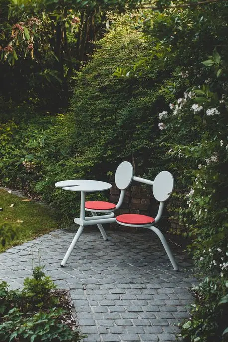 Lorsque vous voyez le Bistrot, vous comprenez immédiatement pourquoi il s‘écrit avec ‘oo’. Les dossiers ronds vous soutiennent lorsque vous êtes assis côte à côte à regarder le monde vivre sous vos yeux. Ce siège pour deux personnes convient parfaitement en toile de fond d’un petit bistro convivial. Cependant, avec deux sièges et une table tous les 116 cm de façade, vous aurez de la place pour un Bistroo sur votre balcon ou sur le trottoir à côté de votre porte. Le Bistroo demeure parfaitement stable sur n’importe quelle terrasse, en plein-air grâce à ses trois pieds intelligemment positionnés. Le fait que ce nouveau concept ingénieux soit rapide à empiler et à mettre sous clé est un autre gros avantage.