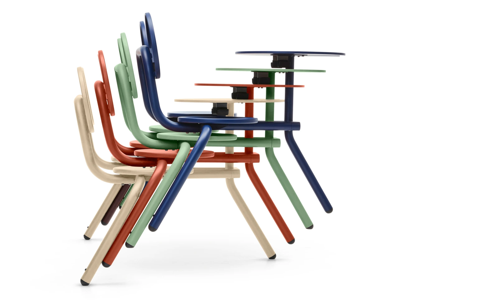 Bistrot est une innovation sur le marché des contrats : il s’agit d’un ensemble de salle à manger biplace pratique et résistant aux intempéries. Sa conception intelligente à trois pieds le rend parfaitement stable sur n’importe quelle surface et, qui plus est, il est plus facile à empiler et à ranger que les tables et les chaises individuelles. Des métaux structurés et recouverts de poudre sont associés à des caractéristiques et des accessoires astucieux. Bistroo convient parfaitement aux petits espaces et se sent comme chez lui, avec pour toile de fond un restaurant compact et confortable ou sur un petit balcon de ville.