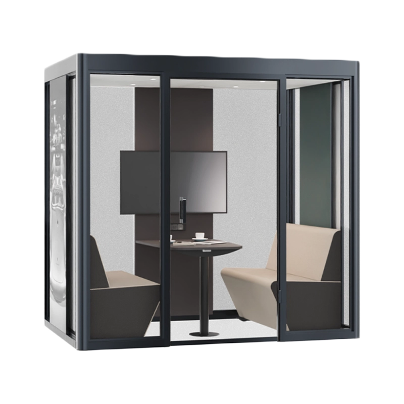 Le cube 4.0 dialogue est une boîte de dialogue confortable pouvant accueillir jusqu’à quatre personnes. Il peut être aménagé selon les besoins : Tantôt pratique, tantôt confortable, il est un lieu pour de courtes réunions, des conférences téléphoniques ou même un petit bureau. En option, les côtés extérieurs peuvent être aménagés en tableau blanc.