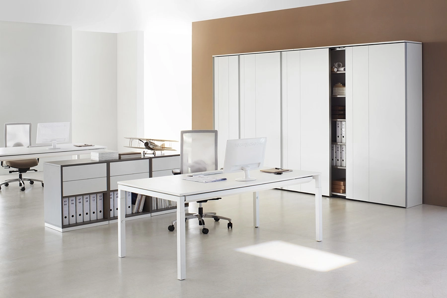 Un espace de rangement design et de qualité : Avec son élégant système d’armoire à façades coulissantes glider, ophelis combine un visuel apaisant et architectonique et la possibilité de ranger de manière efficace les dossiers mêmes nombreux. Qu’il s’agisse d’un meuble d’appoint ou d’un système de rangement, le design du système de rangement se caractérise par ses grandes façades.