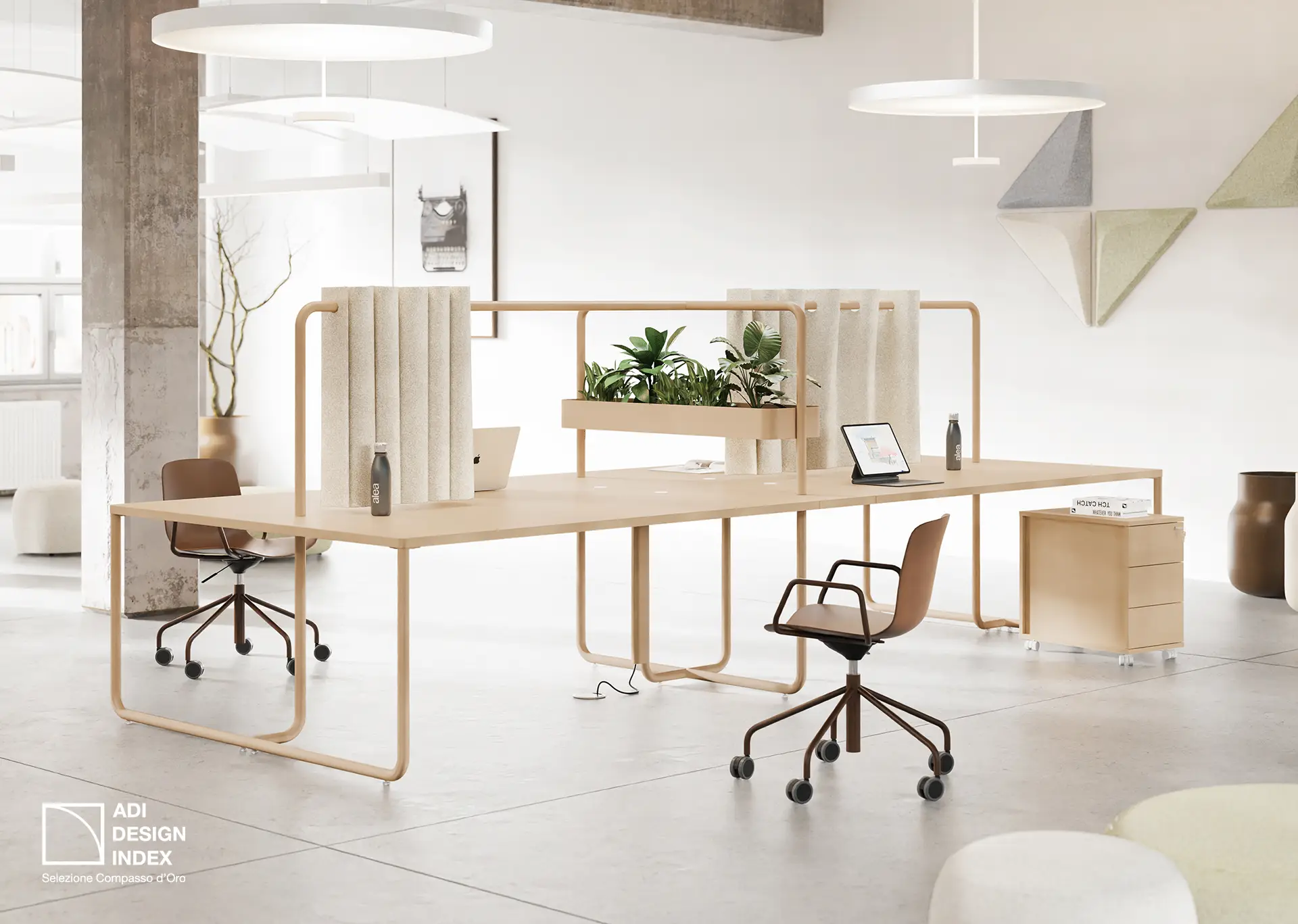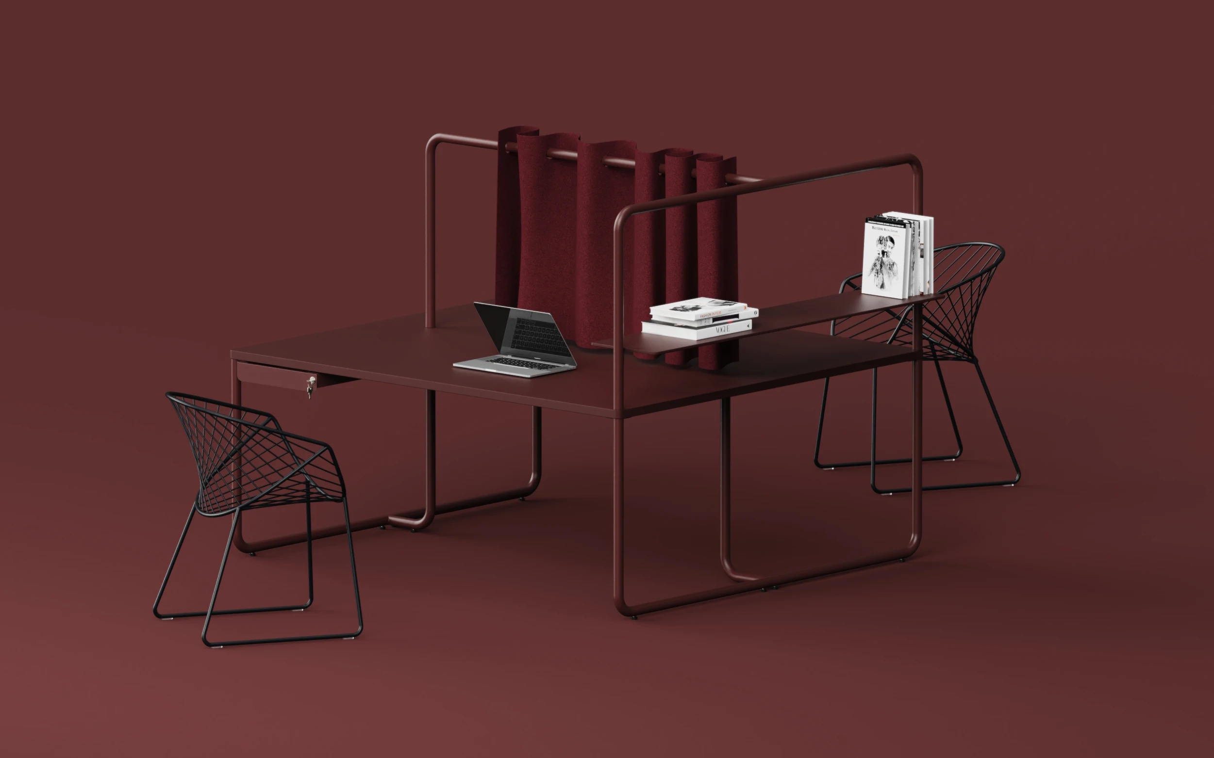 Itube est une collection polyvalente au design funky, idéale pour les espaces de coworking, avec un profil tubulaire distinctif et des accessoires non conventionnels permettant une personnalisation créative de l’espace de travail.