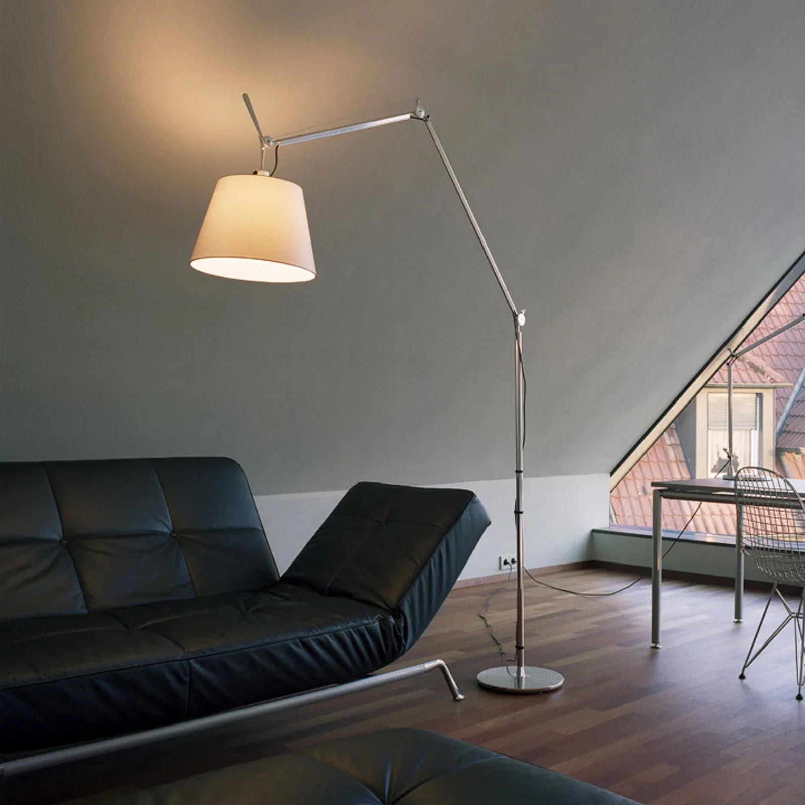 Tolomeo Mega : version monumentale de l’icône italienne, elle allie flexibilité et élégance avec un abat-jour généreux pour une lumière douce et chaleureuse, idéale en pièce centrale.