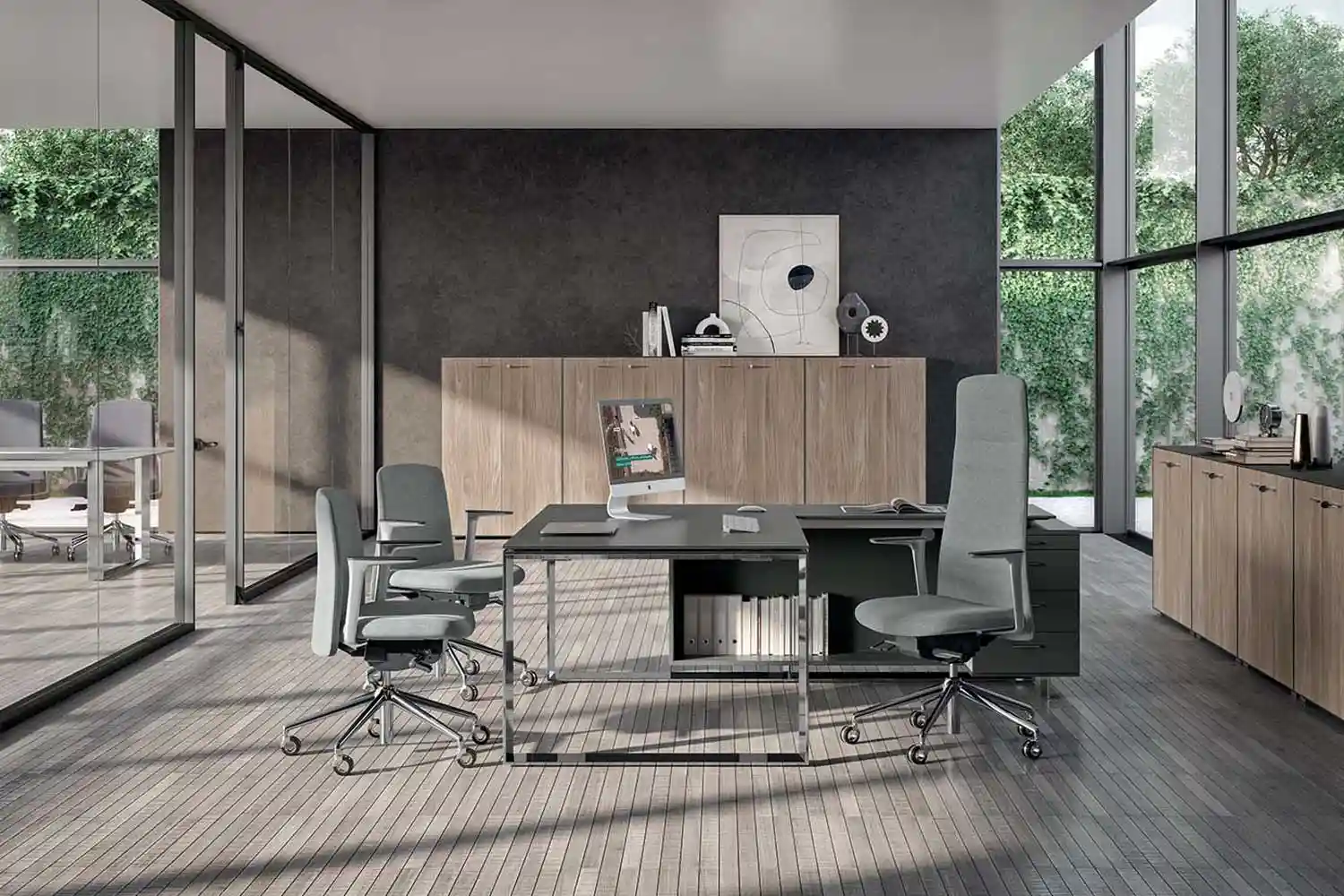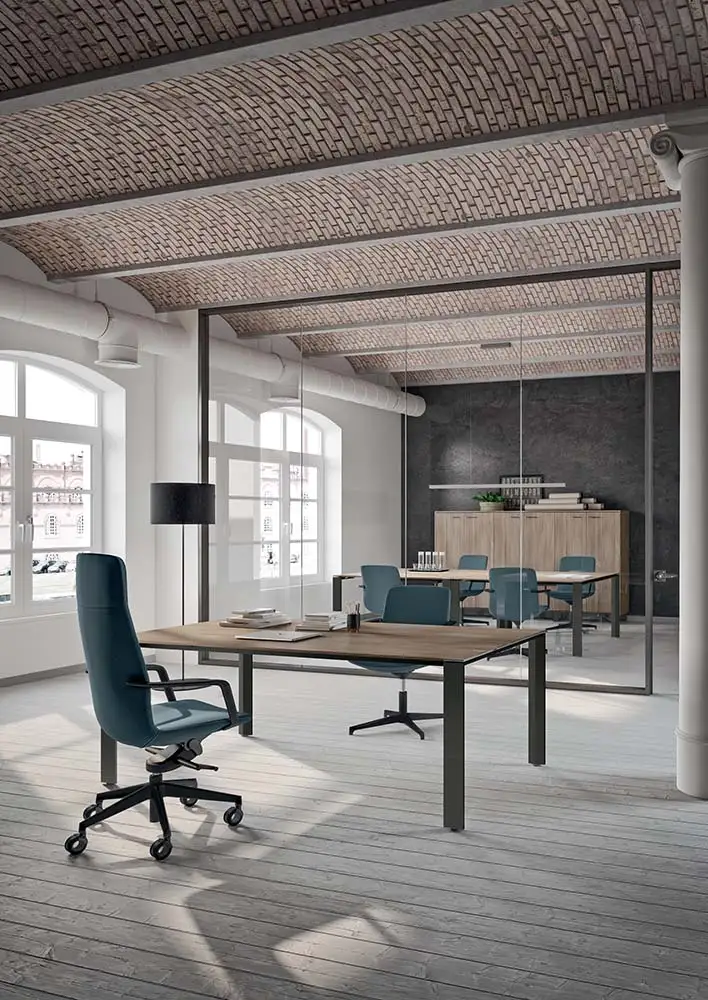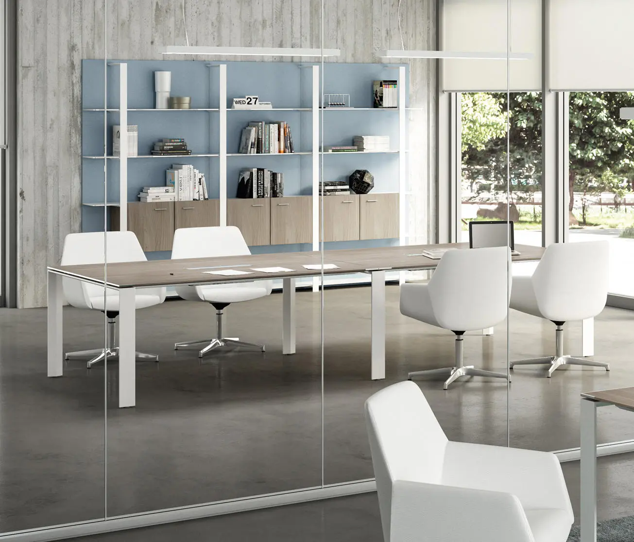 X7 peut être déclinée aussi bien en version exécutive qu’en table de réunion avec accessoires opérationnels et de rangement de matériel, pour s’adapter aux besoins professionnels dynamiques d’aujourd’hui.