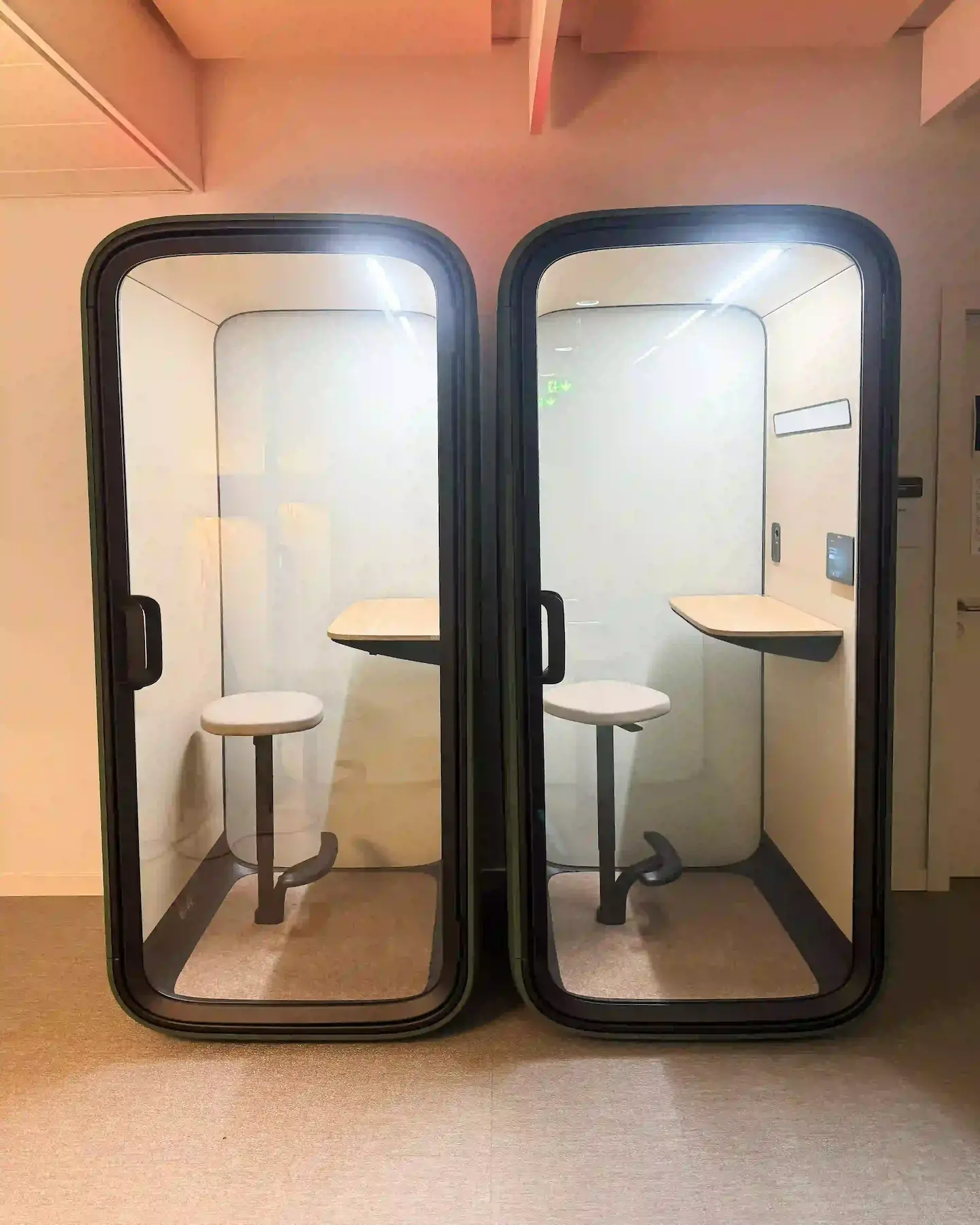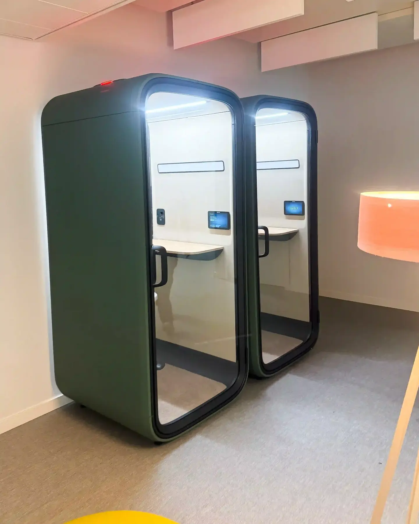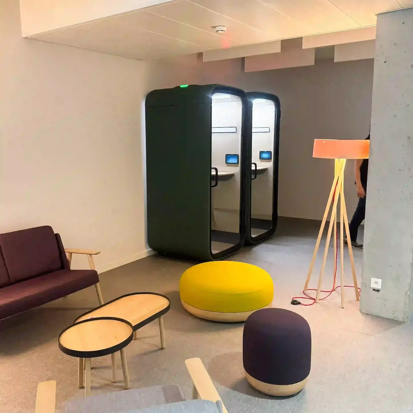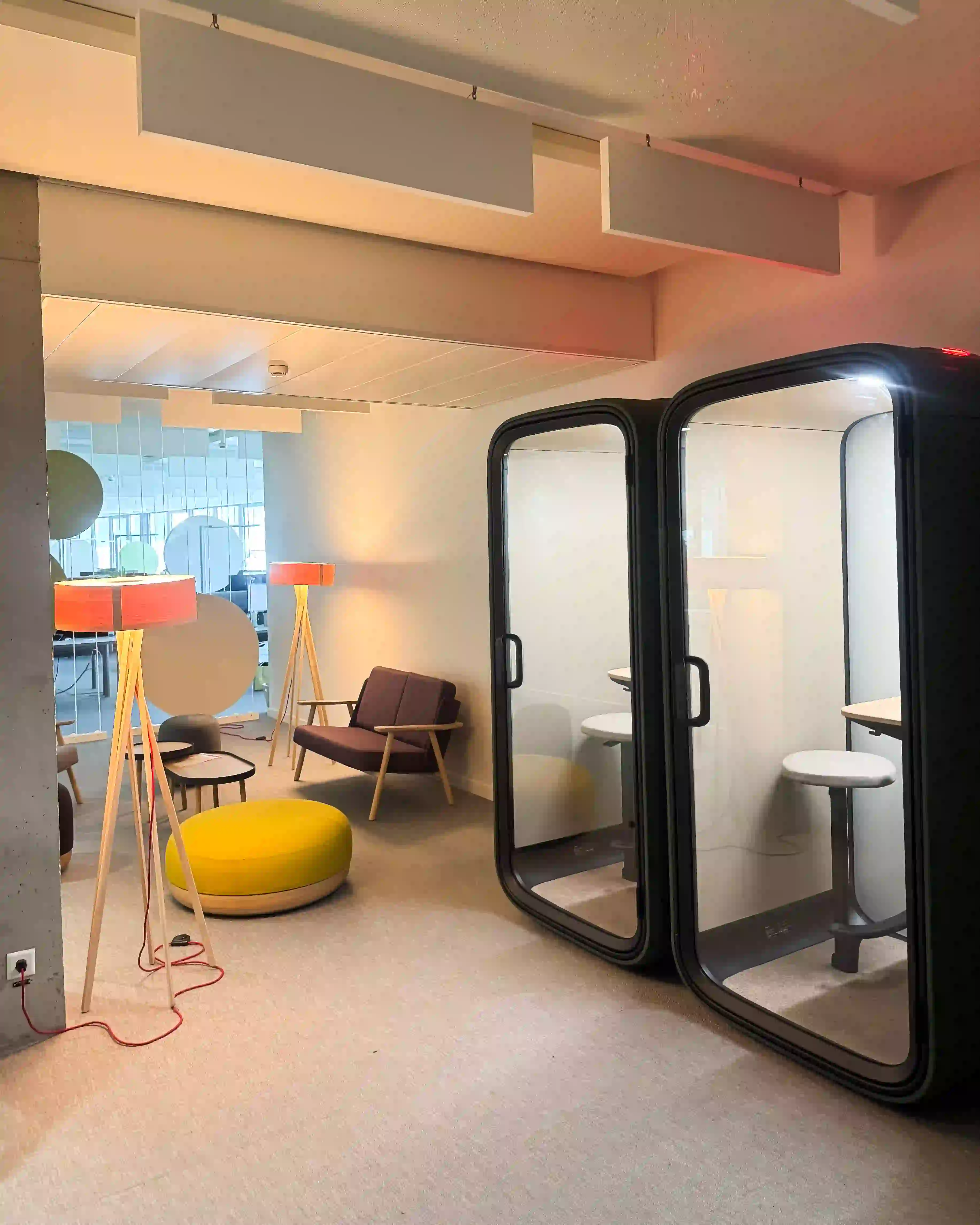 Cette extension d’aménagement illustre parfaitement l’approche de suivi et d’évolution des espaces de ROD. La solution retenue, une Framery One Compact, répond avec efficacité aux nouveaux besoins de communication professionnelle. La couleur a été spécialement personnalisée pour s’harmoniser avec l’esthétique existante du lieu, créant une continuité visuelle parfaite. Cette phone box offre une acoustique optimisée grâce à une isolation phonique de haute performance qui permet des communications claires sans perturber l’environnement de travail environnant. L’équipement intégré facilite les visioconférences avec un système d’éclairage, de ventilation et une connectique adaptée aux besoins professionnels modernes. La finition élégante s’intègre naturellement dans l’espace tout en apportant une touche contemporaine à l’aménagement global. Cette réalisation témoigne de l’approche de ROD : des solutions d’aménagement évolutives qui allient fonctionnalité, esthétique et bien-être au travail, avec un suivi après installation pour faire vivre et adapter les espaces aux besoins changeants des entreprises.
