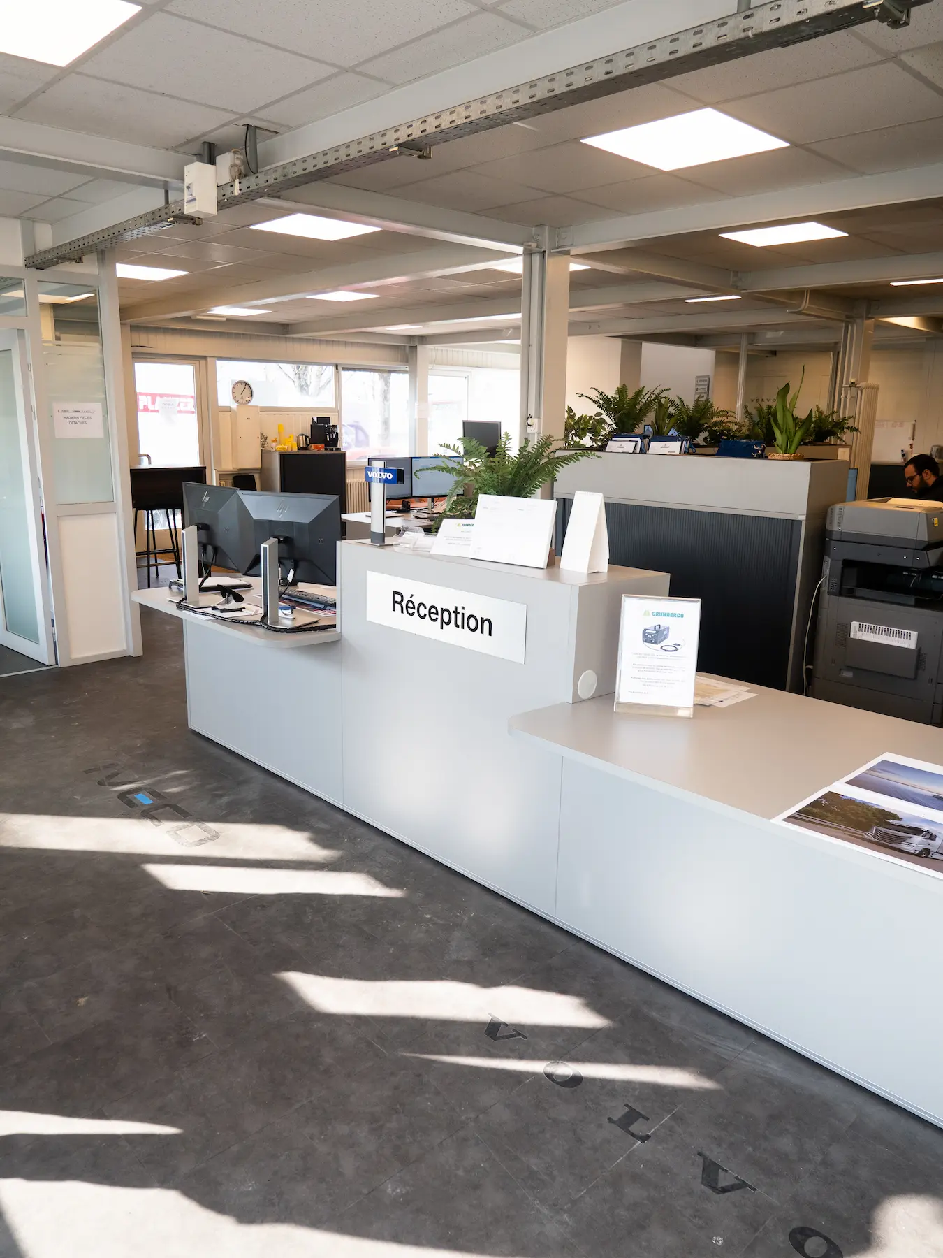 Cette réalisation, menée en collaboration directe avec le client, illustre parfaitement comment l’aménagement peut transformer l’expérience utilisateur et l’efficacité opérationnelle. La banque d’accueil, pièce maîtresse réalisée sur mesure, allie praticité et sobriété pour offrir une première impression mémorable aux visiteurs. L’îlot central a été conçu stratégiquement pour permettre à l’équipe d’être réactive tout en préservant une certaine intimité, créant un équilibre parfait entre disponibilité et concentration. La salle d’attente, pensée pour le confort client, allie esthétique et fonctionnalité pour une expérience agréable pendant les temps d’attente. L’agencement global privilégie une circulation fluide entre les différents services avec une attention particulière aux besoins de stockage spécifiques au secteur automobile. Des plans 3D ont été réalisés pour faciliter la projection et la validation du projet, témoignant d’une approche collaborative et sur-mesure qui a permis de créer un environnement de travail parfaitement adapté aux ambitions de Grunderco.